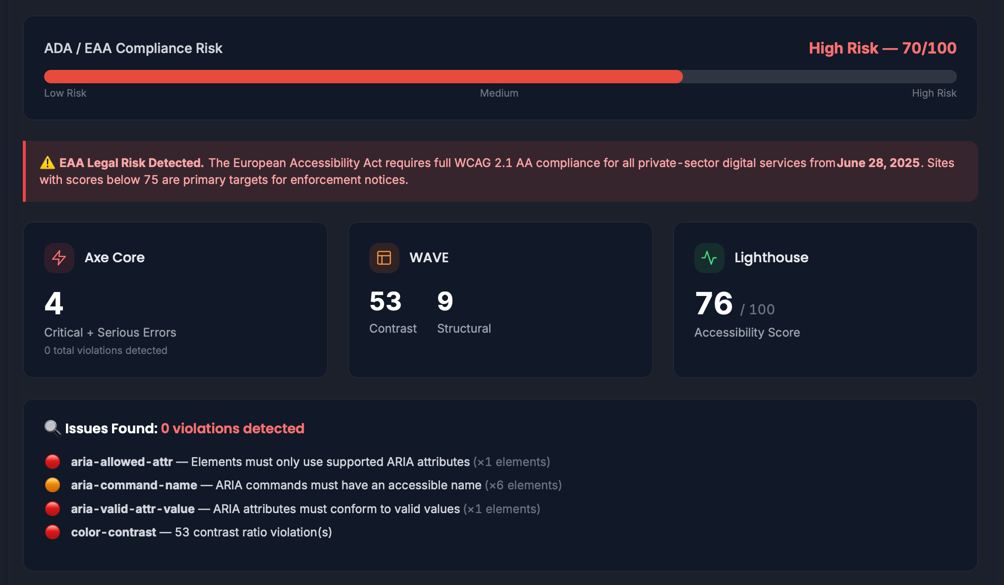 Emulating Human Empathy: We didn't just scrape HTML; we fed it into the claude-sonnet-4-6 model, prompting the AI to simulate a visually impaired user navigating via an industry-standard screen reader.
