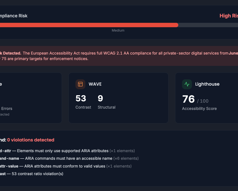 Radical Time Reduction: We slashed the lead time required for comprehensive accessibility audits from several weeks to mere minutes. Real-time, complex analyses now run in the background.